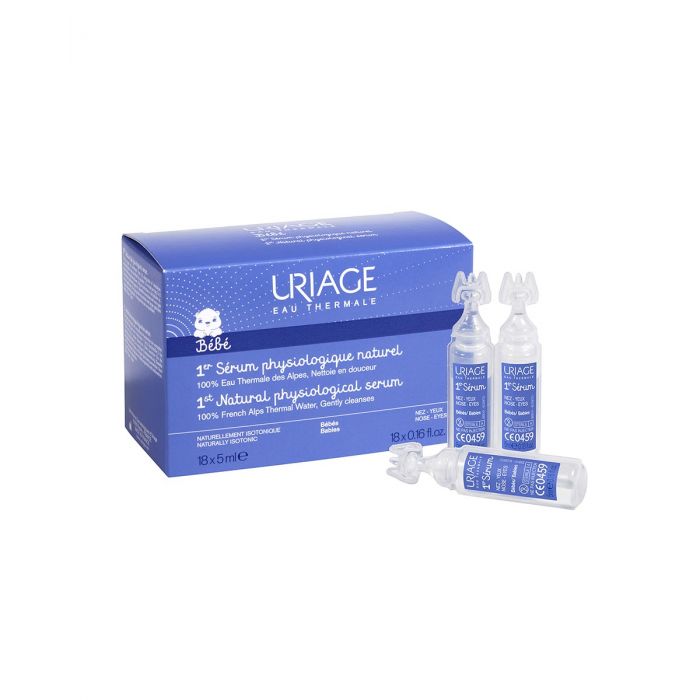 Serum je u ampulama sa 100% Uriage termalnom vodom – prirodno izotoničnom i bogatom elementima u tragovima i mineralima koji ne isušuju sluznicu.