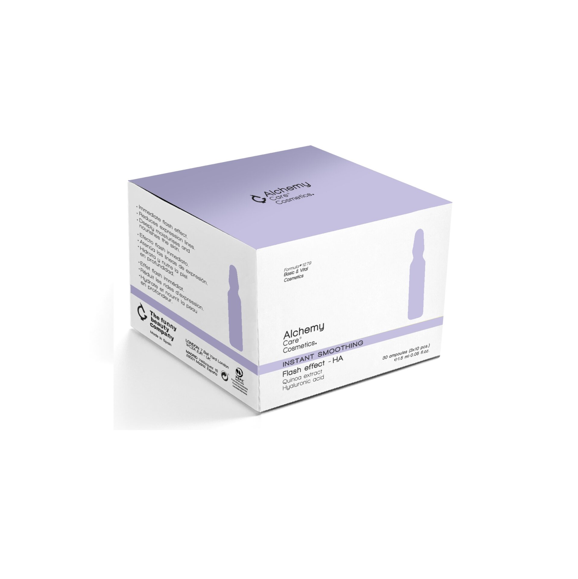 Koncentrirane ampule s bljeskajućim efektom za jednu dozu s ekstraktom kvinoje i hijaluronskom kiselinom, idealne za nanošenje kada imate događaj, zabavu ili posebnu prigodu; brišu znakove umora, zaglađuju i omekšavaju kožu, a istovremeno je održavaju hidratiziranom i podatnom.