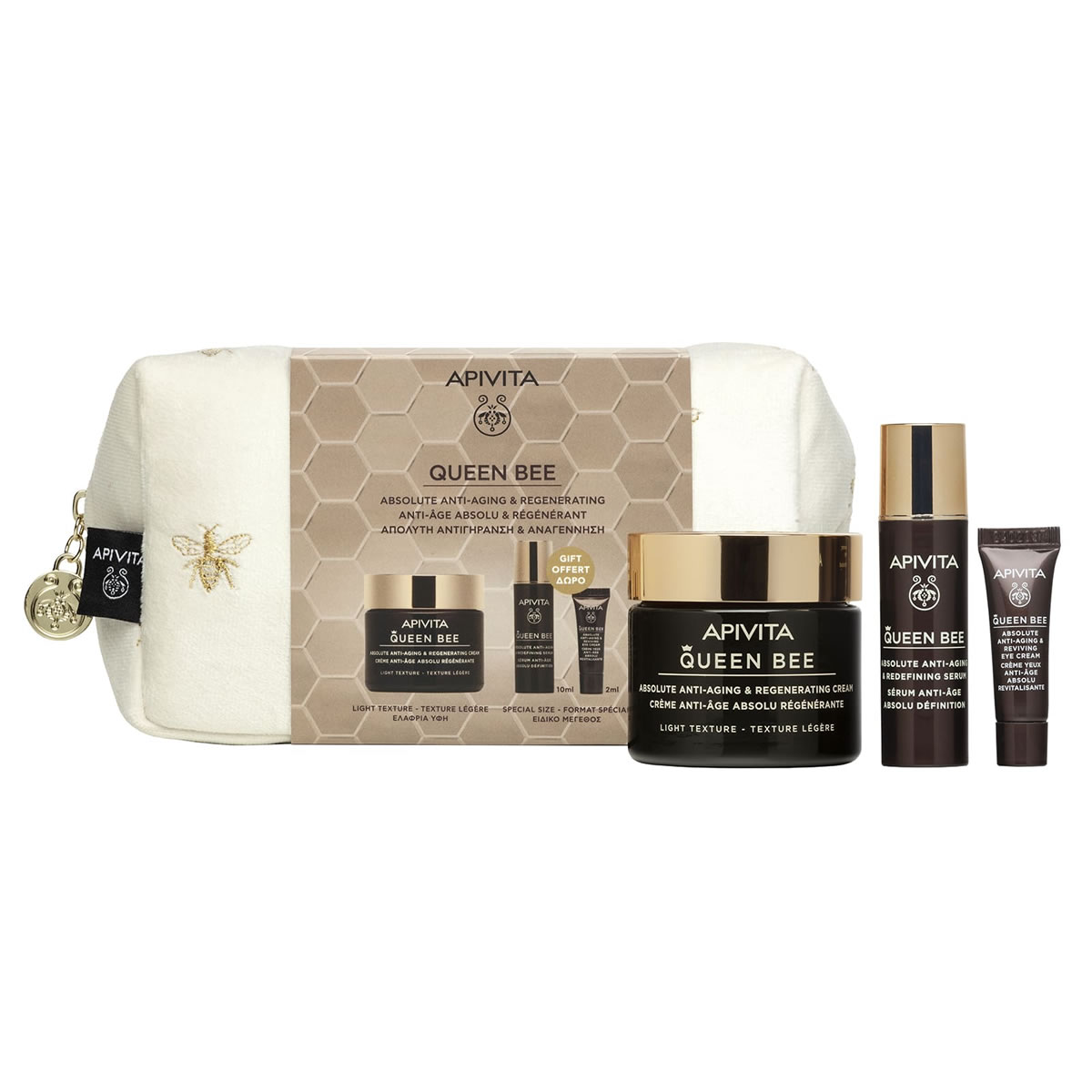 QUEEN BEE Absolute Anti-Aging & Regenerating Cream – Lagana tekstura s matičnom mliječi s kontroliranim otpuštanjem (50 ml): Smanjuje bore, povećava čvrstoću kože, vraća volumen i gustoću kože dok povećava staničnu obnovu, duboko hidratizira, hrani, posvjetljuje i nudi ujednačen ten .