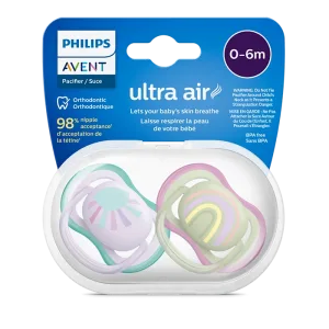 Umirivanje uz ugodu koju pruža zrak. Duda varalica Avent ultra air tvrtke Philips ima izuzetno velike otvore za zrak kako bi koža ostala suha. Dostupna je u raznim bojama i uzorcima.