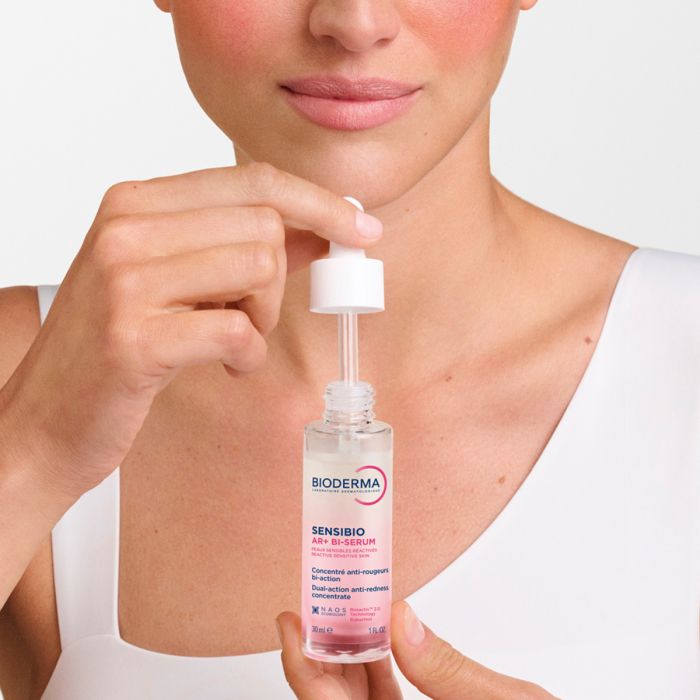 SENSIBIO AR+ BI-SERUM posebno je formuliran za reaktivnu i osjetljivu kožu kako bi pomogao regulirati uzroke i učinke rosacee i znakove starenja kože.