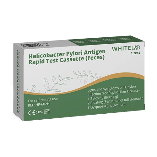 Brzi test za Helicobacter pylori marke White Lab omogućuje otkrivanje prisutnosti antitijela na ovu bakteriju, čime pomaže u otkrivanju infekcije. To je neinvazivna metoda, jer otkriva prisutnost bakterija u uzorku stolice.