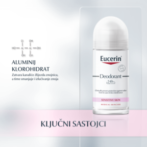 Eucerin Roll-on dezodorans za osjetljivu kožu ne sadrži potencijalne iritanse poput mirisa, alkohola, konzervansa i boje.