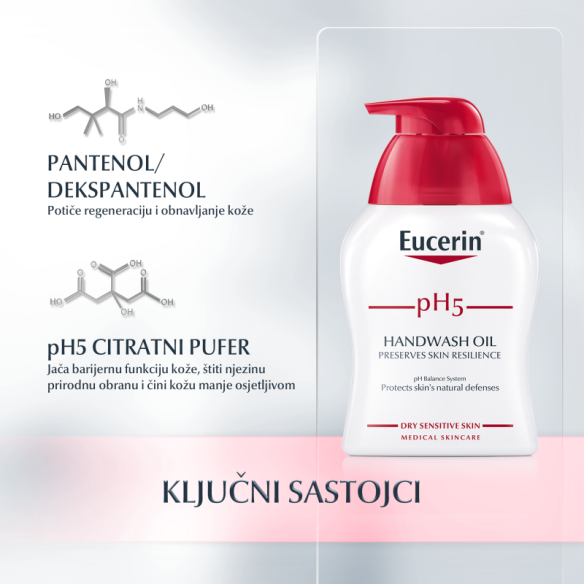 Jedinstveni Eucerin pH balansni sustav sadrži pH5 citratni pufer za obnavljanje i podršku optimalnog pH kože.