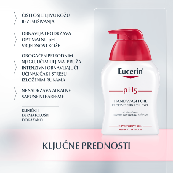 pH5 uljno sredstvo za pranje ruku posebno je formulirano s ekstra blagim površinski aktivnim sredstvima koja čiste suhe, osjetljive ruke bez isušivanja, čak i čestim pranjem ruku.