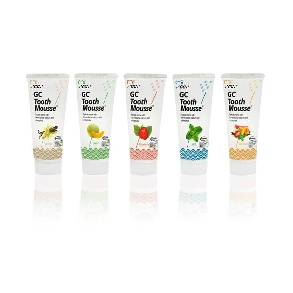 Štoviše, Tooth Mousse je izuzetno učinkovit u vraćanju minerala erodiranim područjima i tamo gdje je vaša caklina tanja. Tooth Mousse sadrži sastojke dobivene iz mliječnog kazeina. Pacijenti koji su alergični na mliječne proteine i/ili hidroksibenzoate trebaju se posavjetovati sa svojim stomatologom o alternativama.