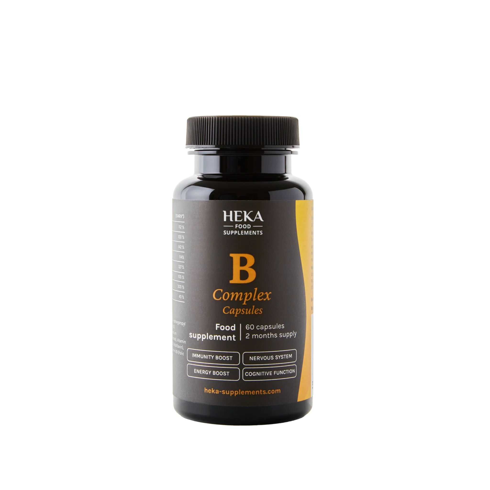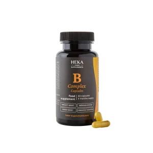 Dodatak prehrani sadrži kombinaciju vitamina B-kompleksa (B1, B2, B3, B5, B6, B9/folna kiselina, B7/biotin, B12) u praktičnoj kapsuli za podršku normalnom metabolizmu ugljikohidrata, energije i živčanog sustava.