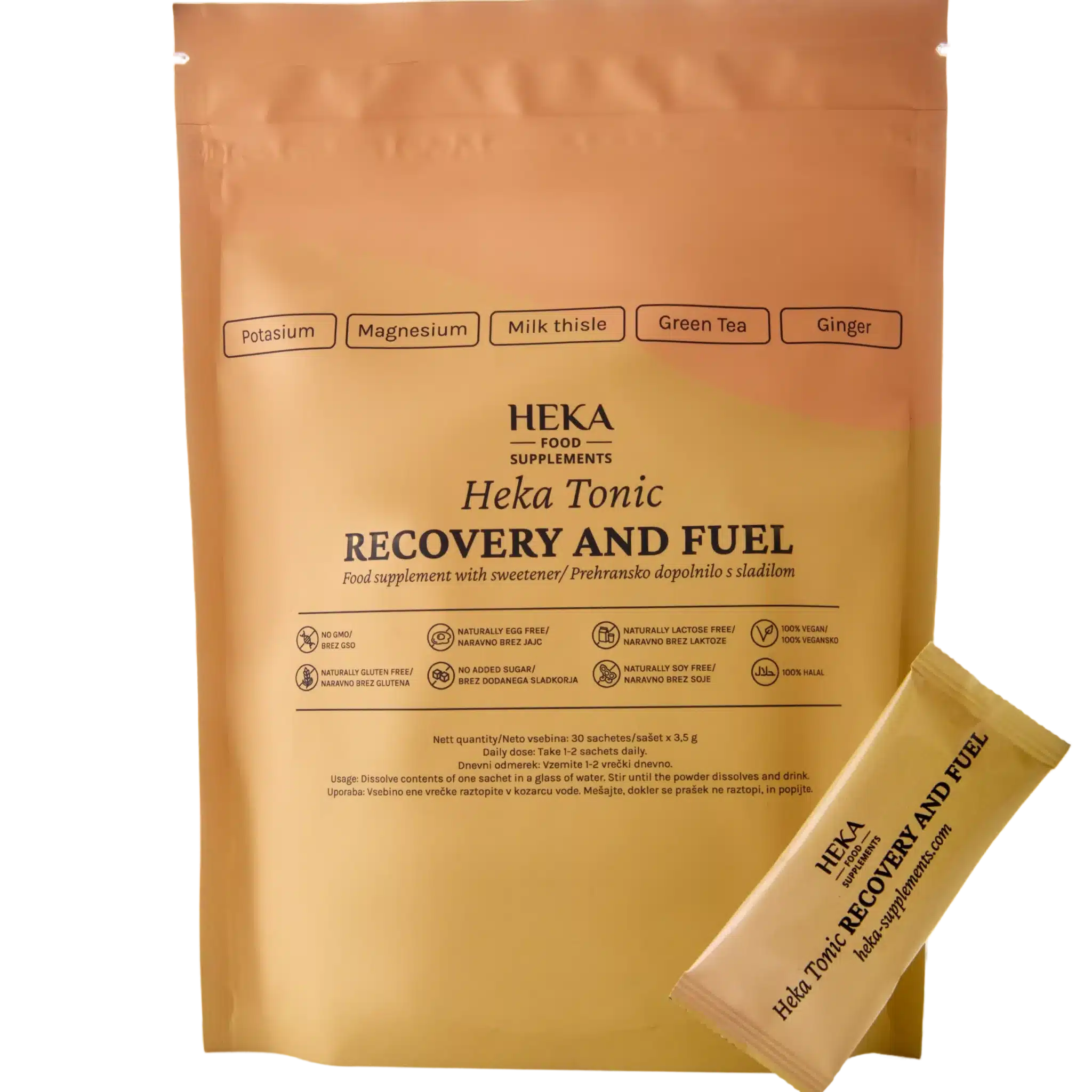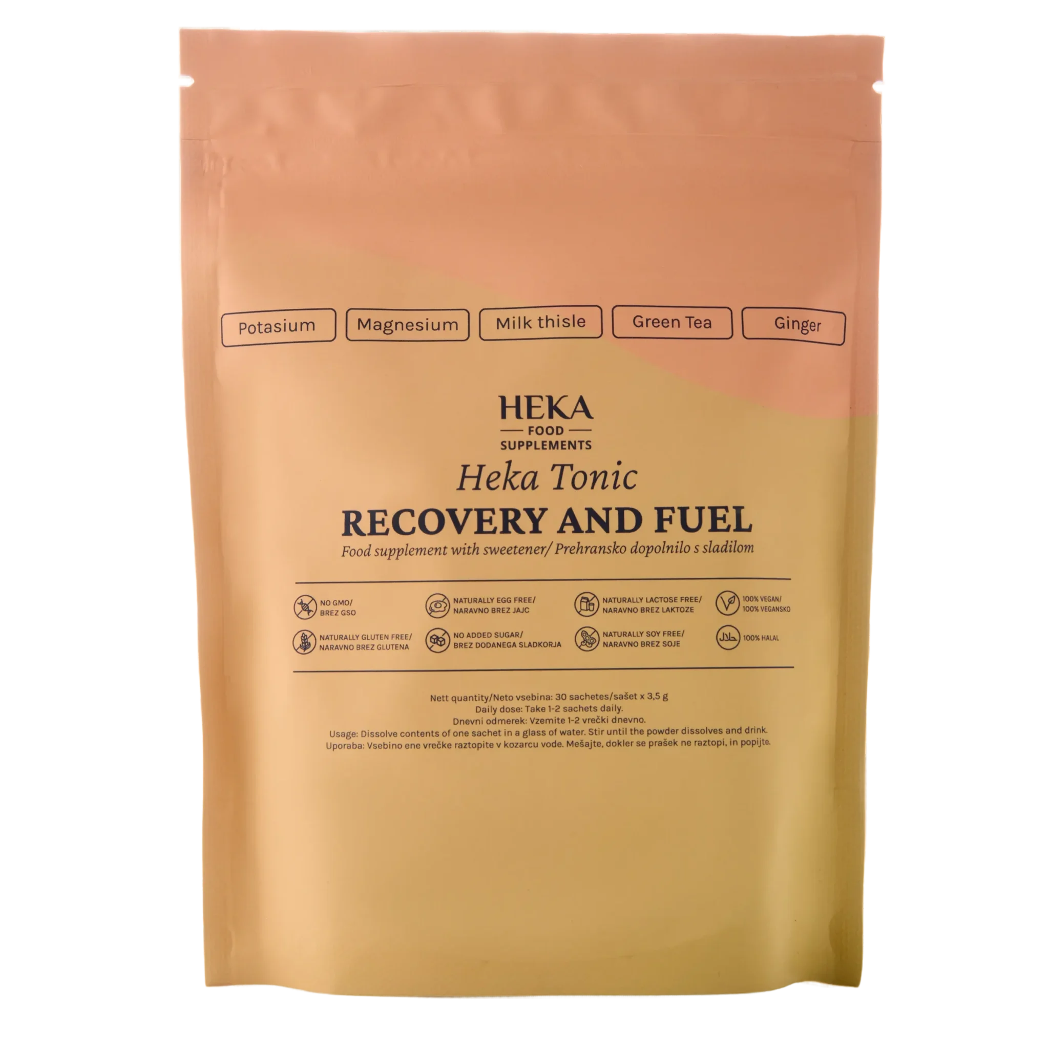 HEKA napitak za podizanje energije i regeneraciju je mješavina u praškastom obliku koja kombinira minerale (kalij, magnezij) s prirodnim biljnim ekstraktima (sikavica, zeleni čaj, đumbir).