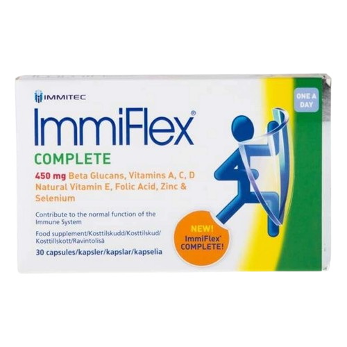 ImmiFlex kapsule su jedinstvena mješavina beta glukana, 5 vitamina i 2 minerala za normalno funkcioniranje imunološkog sustava.