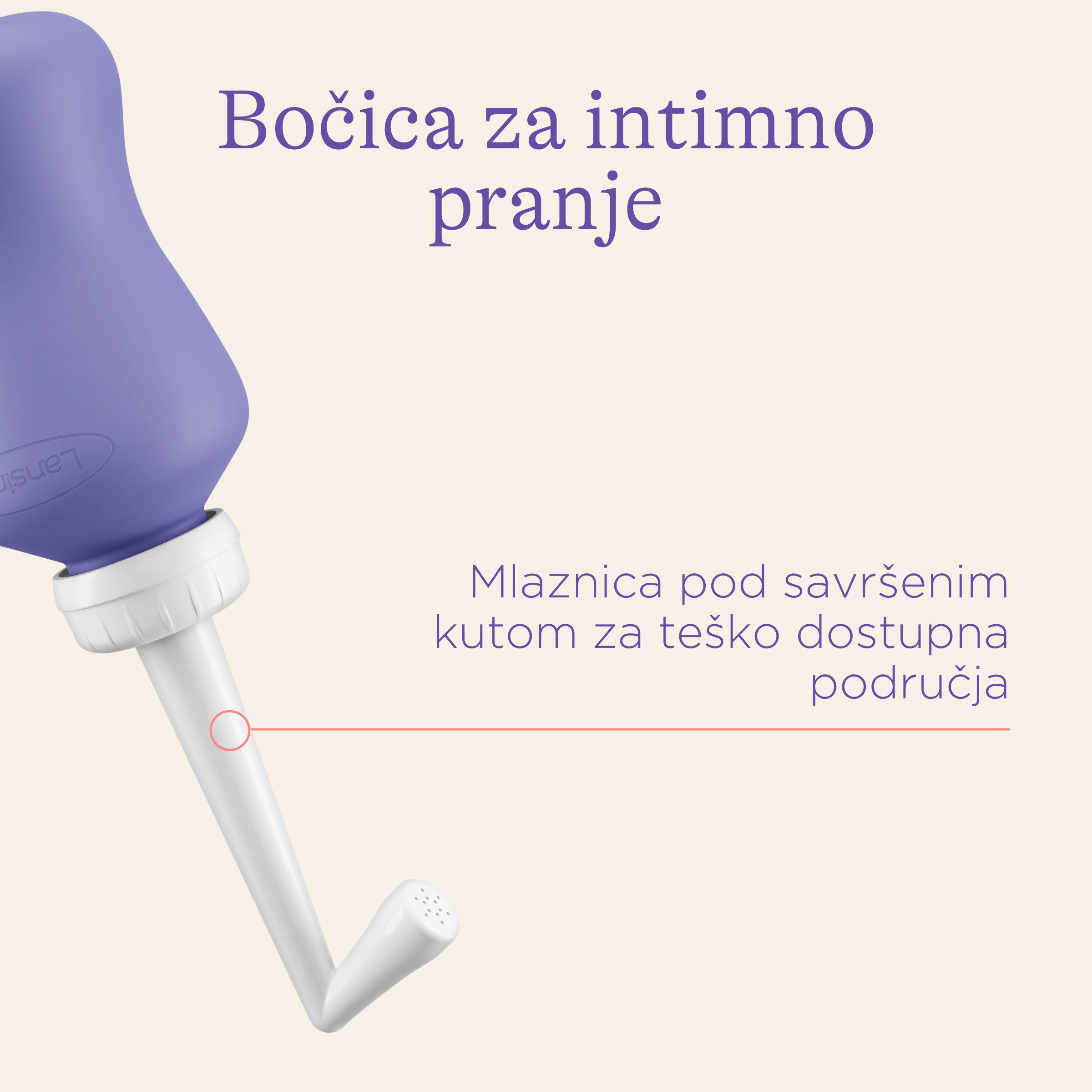 Upotrijebite Lansinoh bočicu za intimno pranje nakon poroda kako biste nježno oprali ovo osjetljivo područje i ublažili nelagodu nakon poroda pročišćavajućim mlazom vode.