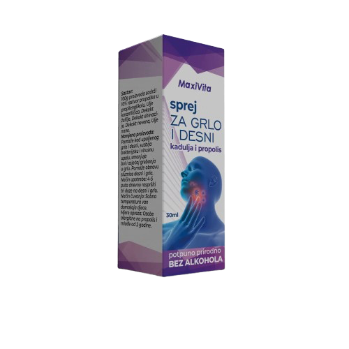 Sprej za grlo i desni na bazi kadulje i propolisa pomaže kod upale grla i desni, suzbija bakterijske i virusne upale, smanjuje bol i osjećaj grebanja u grlu.