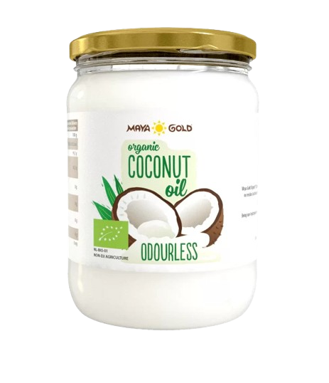 Maya Gold organsko kokosovo ulje bez mirisa je rafinirano, izbijeljeno (postupkom s glinom bez kemikalija koji ne ostavlja tragove kemikalija) i bez mirisa za one koji žele neutralan okus i miris, a istovremeno uživati u svim blagodatima kokosa.