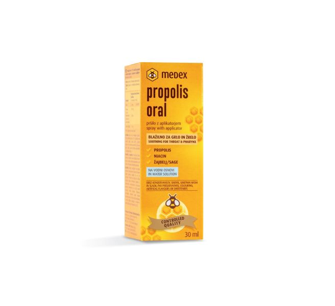 Osim propolisa na bazi vode, proizvod sadrži i med, ehinaceu, niacin koji doprinosi održavanju normalnih sluznica te vodeni ekstrakt kadulje.