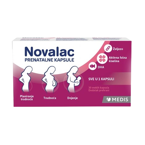 Novalac prenatalne kapsule u samo jednoj kapsuli kombiniraju najvažnije hranjive tvari koje su ženi potrebne prilikom planiranja trudnoće te tijekom trudnoće i dojenja.