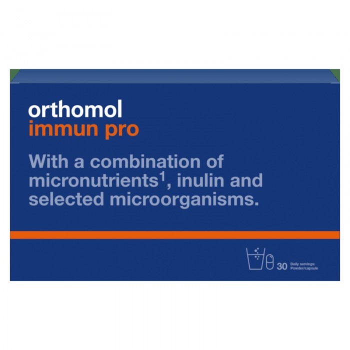 Orthomol Immun Pro je dodatak prehrani koji sadrži precizno usklađenu kombinaciju mikronutrijenata, inulina i odabranih mikroorganizama.