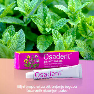 Osadent biljni gel za zube ima ugodno djelovanje hlađenja, djeluje umirujuće, njeguje iziritiranu gingivu tokom nicanja prvog zuba i stoga može olakšati denticiju.