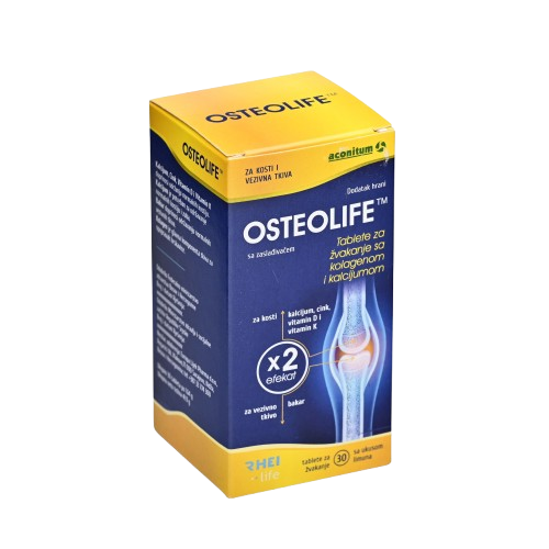 OsteolifeTM predstavlja optimalnu kombinaciju 6 aktivnih komponenti: vitamina K2, vitamina D3, kalcija, cinka, bakra i kolagena namijenjenih održavanju normalne funkcije kostiju, zglobova i zubi.