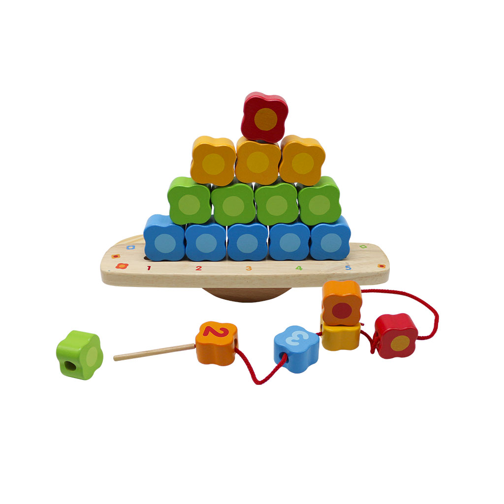 Didaktička klackalica uključuje bazu (s ilustracijama brojeva i nazivima brojeva na engleskom jeziku), štapiće koji se umetnu u bazu i drvene cvjetne elemente s ilustriranim bojama.