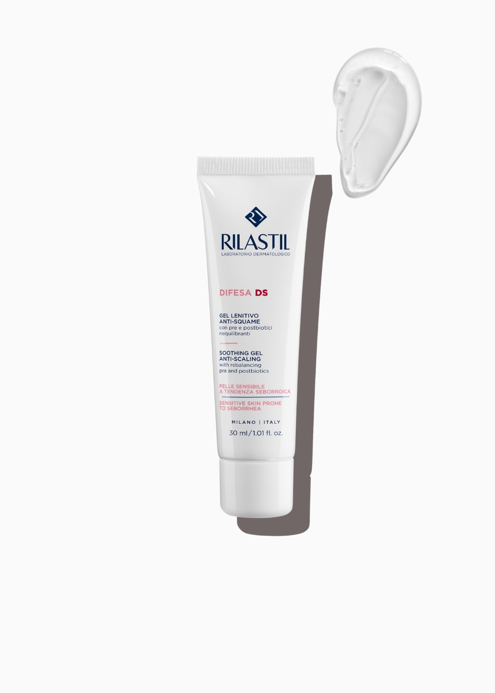 Rilastil Difesa DS umirujući, lagani i brzo upijajući gel, pogodan za osjetljivu kožu sklona seboreji.