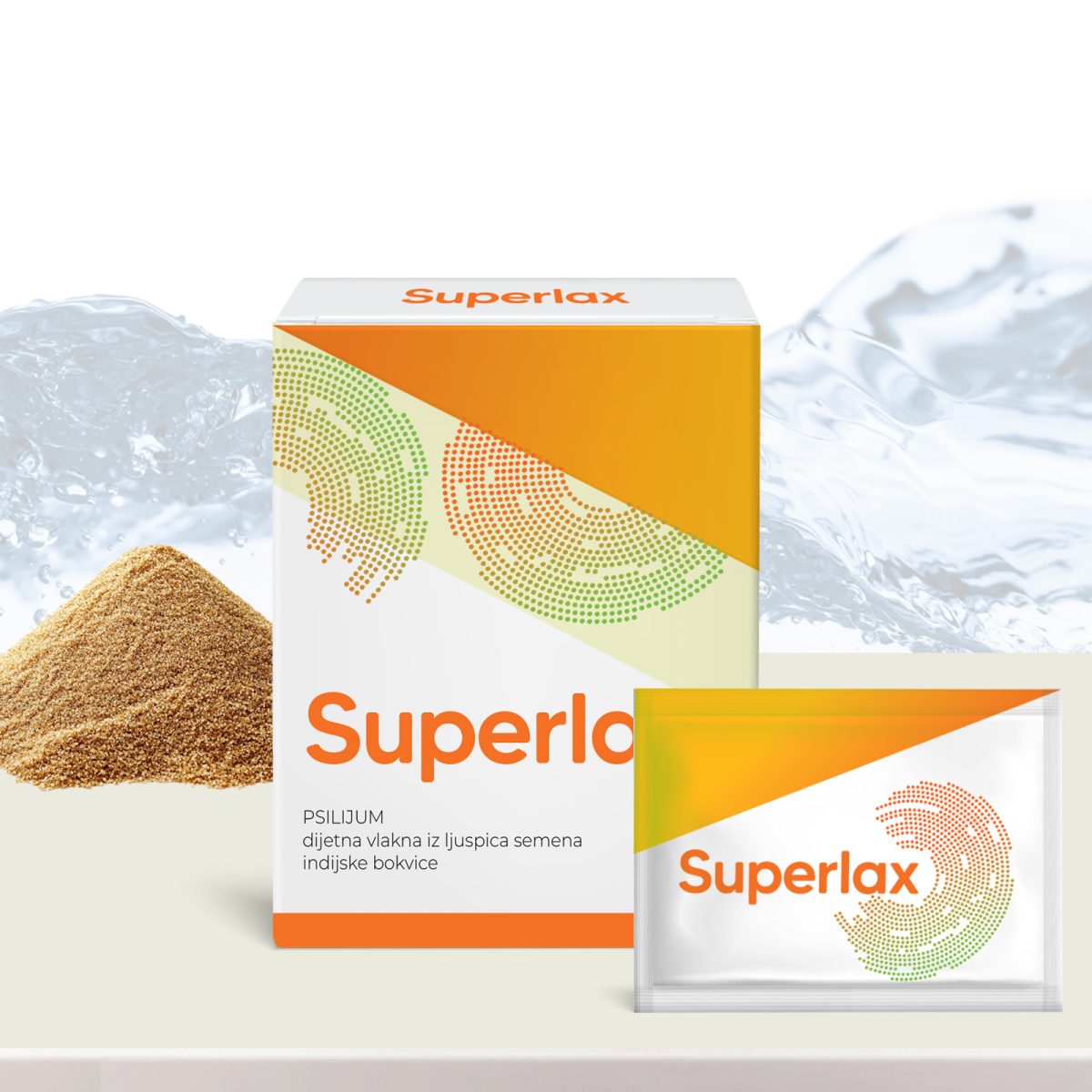 Superlax, prašak za pripremu napitka, dodatak je prehrani s prirodnim dijetalnim vlaknima topljivim u vodi – psylliumom, dobivenim iz praha ljuski indijskog trputca, namijenjen probavnom sustavu, kolesterolu i kardiovaskularnom sustavu.