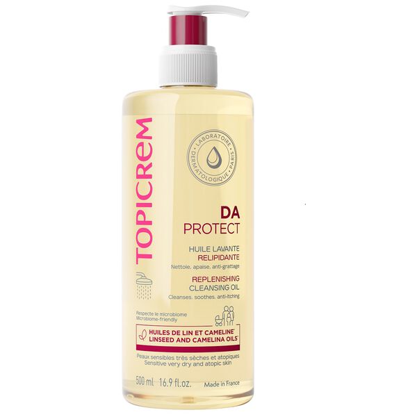 DA PROTECT ulje za čišćenje koje nadoknađuje lipide kombinira učinkovitost i osjetljivost zahvaljujući svojoj bogatoj, kremastoj teksturi i mirisu posebno razvijenom za njegu atopične kože. Obogaćeno kompleksom obnavljajućih i umirujućih aktivnih sastojaka, obnavljajuće ulje za čišćenje jača barijeru kože. Osjećaj svrbeža i iritacije se umiruje.
