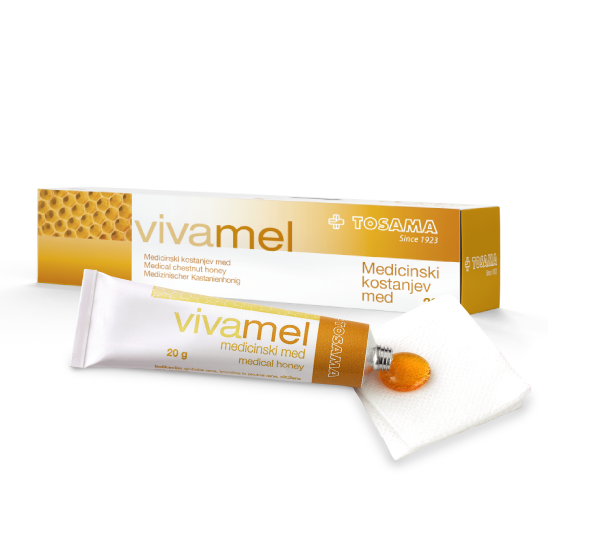Medicinski kestenov med u tubi Vivamel je potpuno prirodno proizveden nerazrijeđeni medicinski kestenov med. Samostalni je primarni oblog, jer se stavlja izravno na ranu.