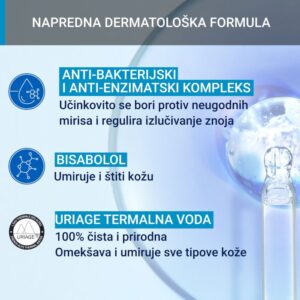 Kontrolira mirise, inhibira enzime odgovorne za razgradnju znoja i kontrolira tjelesni miris zahvaljujući svojoj anti-ljepljivoj moći.