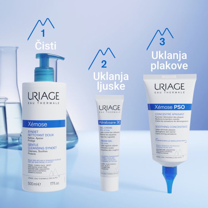 Patent [CERASTEROL 2F] obnavlja i jača kožnu barijeru. Koža je umirena zahvaljujući Uriage termalnoj vodi. Obogaćen shea maslacem, Xémose PSO hrani i pruža udobnost koži.