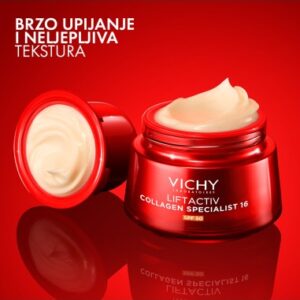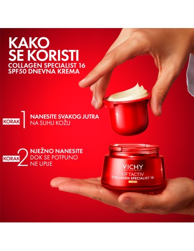Co-bonding tehnologija [ramnoza+peptidi+Maitake] potiče i veže skupine kolagena.* + [SPF 50] štiti kožu od dnevnog izlaganja suncu.