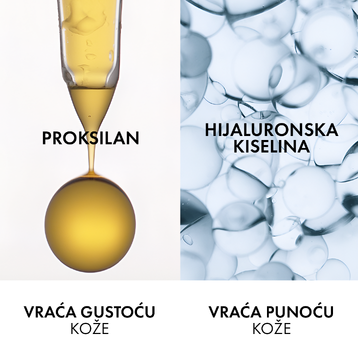 Vichy lagana noćna krema s obnavljajućim kompleksom, sadrži proksilan, ekstrakt kasije i hijaluronsku kiselinu, hidrira i vraća gustoću nadokađujući učinke hormonskih promjena na koži.